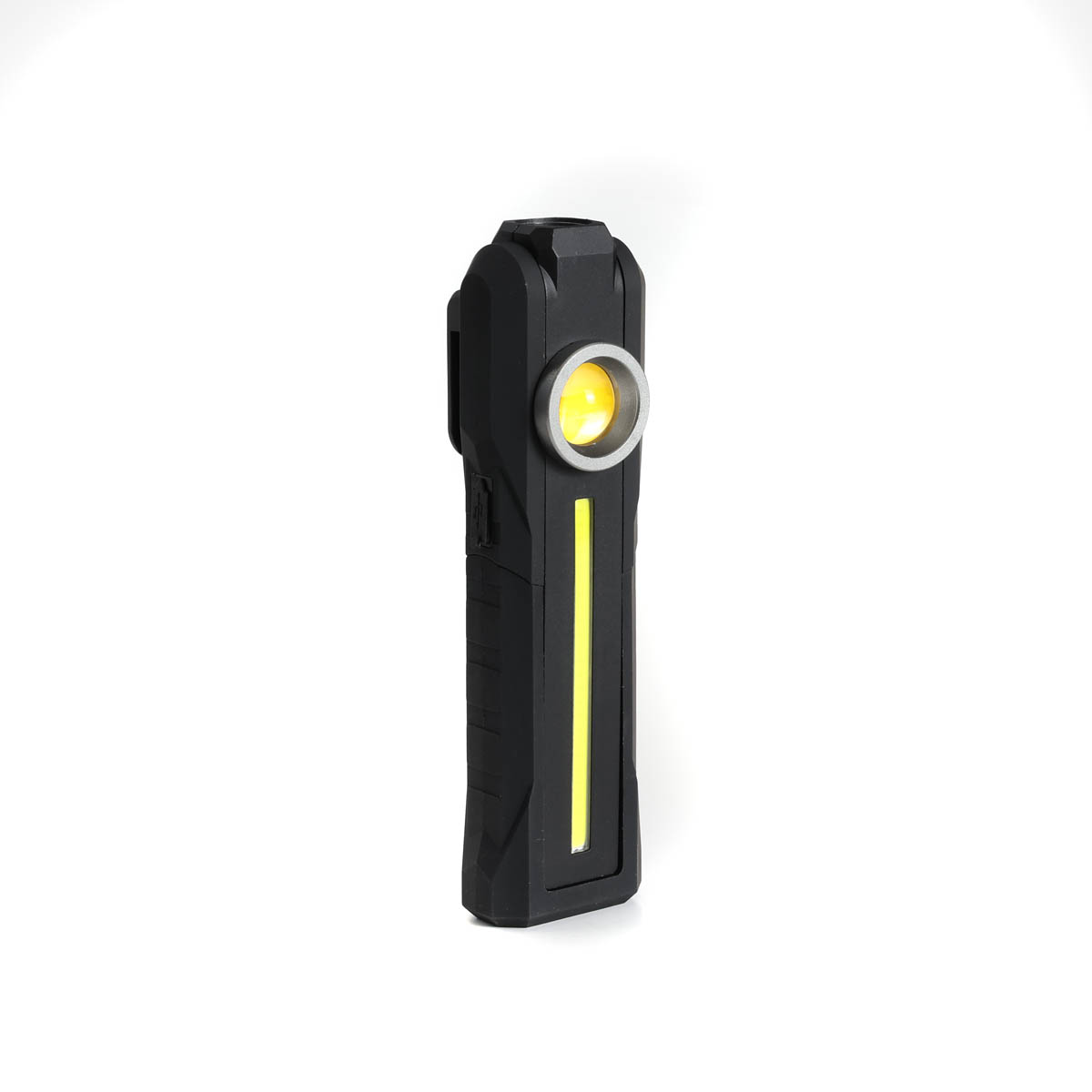 • DUAL LIGHT TECHNOLOGY (COB + TORCH) – Features a powerful 300-lumen Yellow COB work light for wide-area floodlighting and a 110-lumen top torch for a focused beam. Perfect for switching between general area lighting and detailed inspection work.